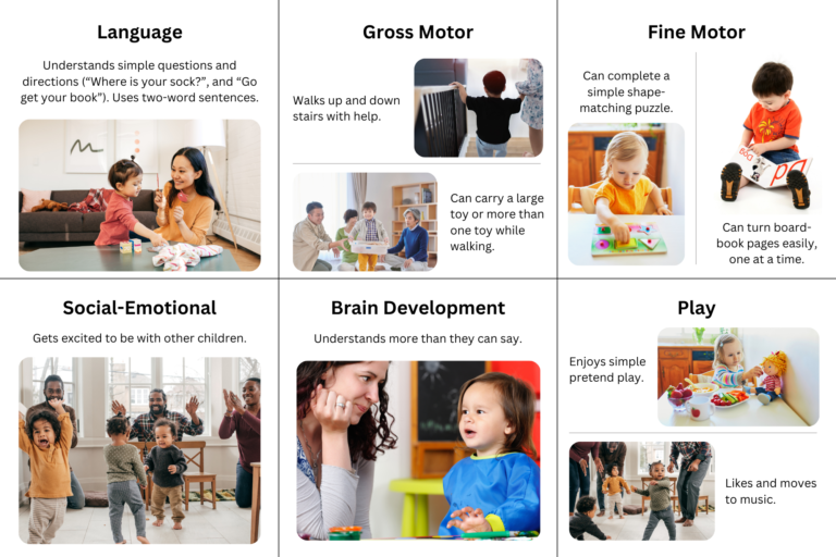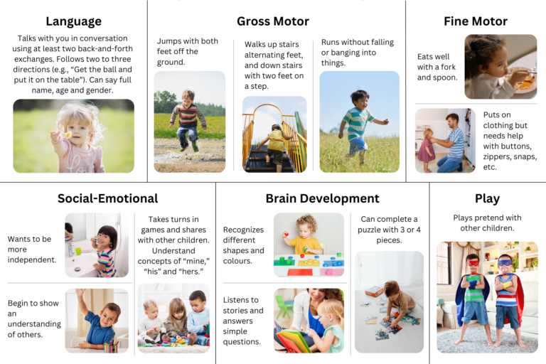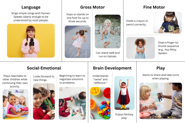 While every developmental stage has milestones, development is not a race. Your child will grow and develop at their own pace. The table below is a general guide for development from ages 2-5. For developmental milestones in infants, please visit Child Development (Infant).